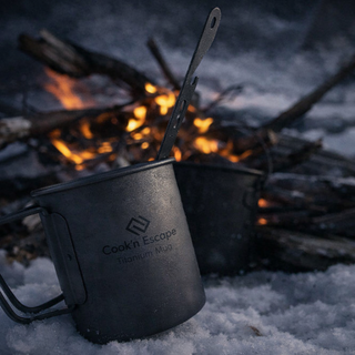 Cook’n Escape のクックウェアは、軽量で耐久性に優れ、アウトドアでの使用に最適化されています。 湯を沸かすところから料理の提供まで、必要なアイテムがコンパクトにネスト収納でき、バックカントリーでの日常的なニーズにも応えます。