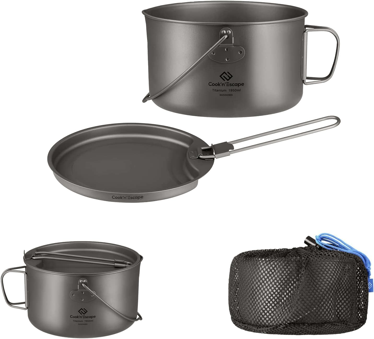 - この1950ml吊り型ポットには、COOK'N'ESCAPE チタンケトル 900mlをまとめて収納できます。シリーズ利用で荷物をよりコンパクトにまとめられます。