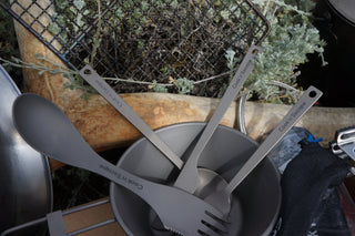 COOK'N'ESCAPE チタン製 三徳スプーン&箸セット メッシュ収納袋付き超軽量0.06g