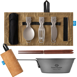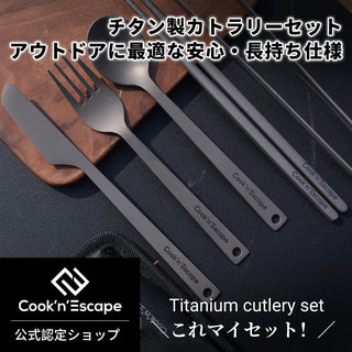 COOK'N'ESCAPE チタンカトラリーセット 折りたたみ式5点/6点