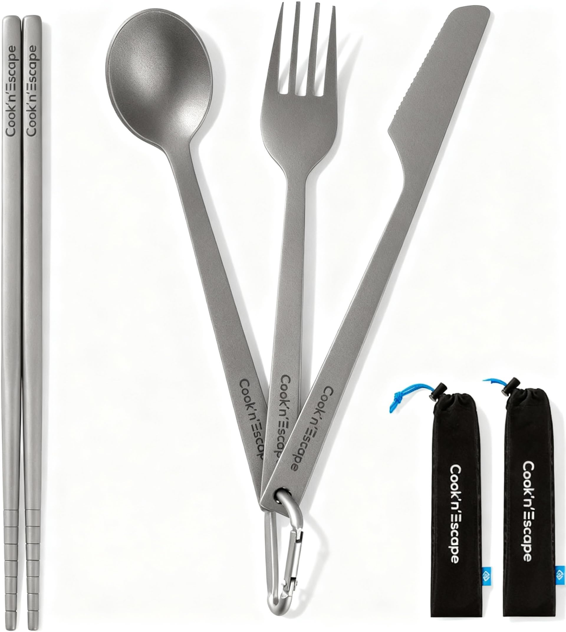 • 「高品质チタン素材」当社のカトラリーセットは、金属アレルギーの方にも安心して使用できる、無涂層の高品質チタンを使用しています。チタンは軽量で耐久性が高く、腐食に強いだけでなく、金属アレルギーの心配も少なく、安心して使用できる素材です。過酷な環境でもその優れた性能と美しい外観を保ち、毎回の食事がさらに快適になります。