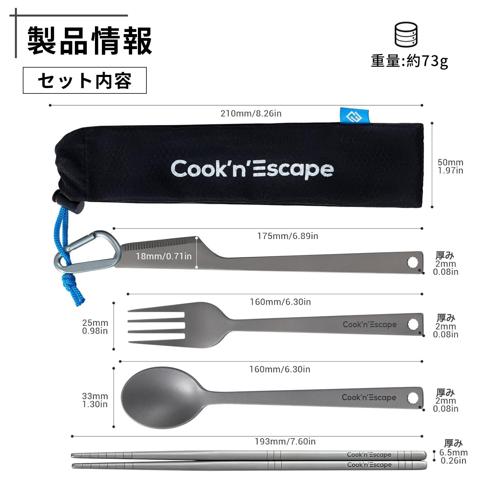 • 「超軽量デザイン」 当社のチタン製カトラリーセットは、登山やキャンプに最適な軽さを誇ります。バックパックに入れても負担にならず、アウトドアの冒険がもっと楽に、もっと自由に感じられます。一部のお客様から「思ったほど軽くない」とのご意見をいただいておりますが、軽量化を追求しすぎると製品の強度が損なわれる恐れがあるため、私たちは強度と質感を保ちながら、最適なバランスを目指しました。これにより、より安心して使えるカトラリーに仕上がっています。
