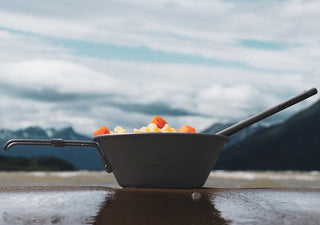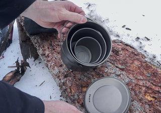 重厚な山塊を思わせるスクエア形状の Mount Logan クッカーセット。角形デザインにより、料理の盛り付けやスープ・ソースなどの注ぎ分けが非常にしやすい構造になっています。
